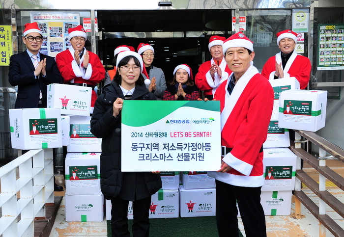 현대중공업은 23일 울산 동구에 외치한 울산화정종합사회복지관에서 어린이재단 울산지역본부에 성탄절 선물을 전달했다. 선물은 장갑, 목도리 등의 방한용품과 학용품, 간식거리 등 어린이들에게 필요한 물건으로 구성됐다.