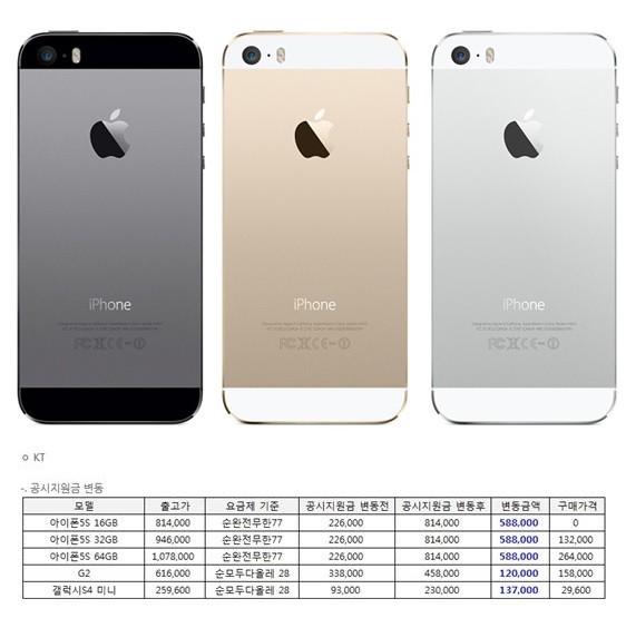 KT가 선수를 치고 나서자 SKT도 아이폰5S에 대한 지원금 인상을 검토하고 있떠 연말에 벌어졌던 주력 단말기에 대한 지원금 경쟁이 재현될 조짐이다. 단, LTE 망만 보유한 LG 유플러스는 3G 스마트폰인 아이폰5S를 취급하지 않는다.