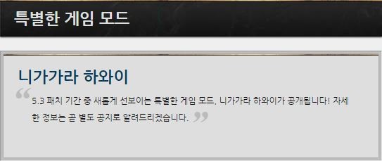 ▲억제기 등 구조물을 마법사 종류의 챔피언이 공격할 때 주문력에 비례한 추가 피해가 적용되지 않던 것을 적용 ▲소환사 주문인 점화가 걸린 상태로 귀환이 불가능하던 것이 가능 ▲새로운 게임모드인 ‘니가가라 하와이’ 모드가 생겨 유저들의 관심을 모으고 있다.