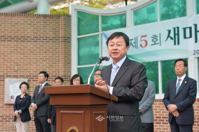 강병호 서울 동대문구 부구청장이 20일 배봉산 야외무대에서 열린 '제5회 새마을의 날 기념식'에 참석해 인사말을 하고 있는 모습. (사진제공=동대문구청)