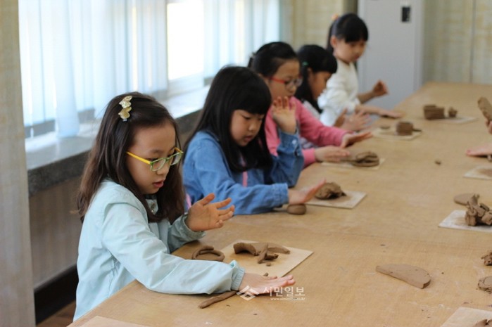경북 구미 원호초등학교 3학년 학생들이 최근 구미예술창작스튜디오를 찾아 문화예술 체험학습을 진행했다. 사진은 이날 학생들이 찰흙을 가지고 도자기 빚기 체험 중인 모습. (사진제공=구미교육지원청)