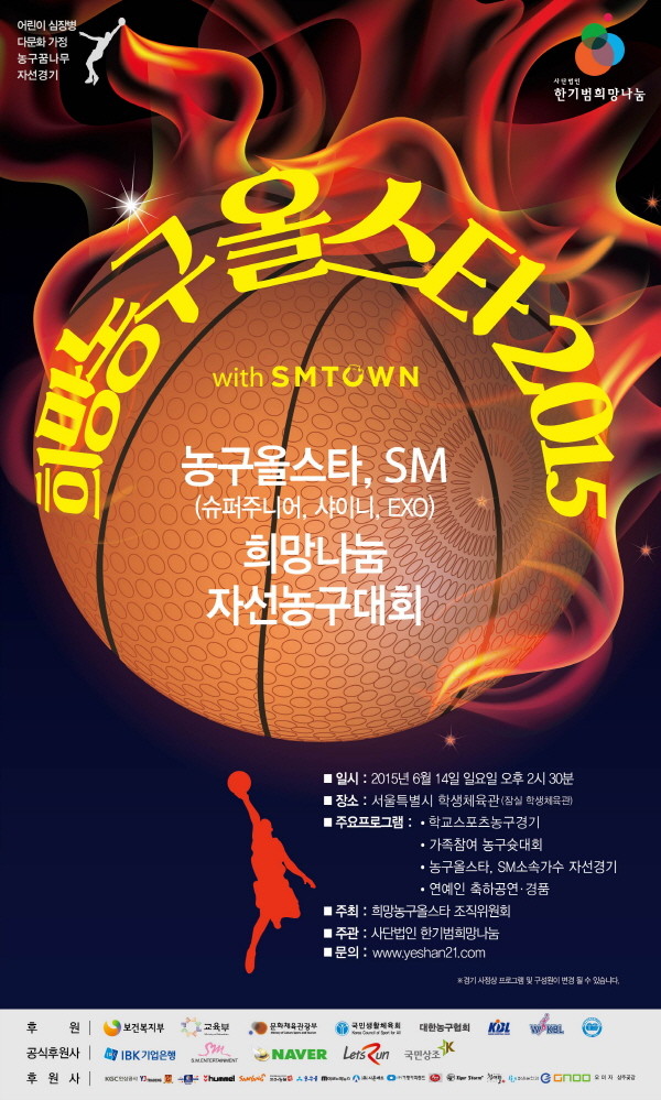 올해로 8회째를 맞는 이번 행사에는 프로농구올스타와 슈퍼주니어, 샤이니, EXO 등 SM엔터테인먼트의 소속 가수들 중 농구를 즐기는 멤버들이 참가할 예정이다.