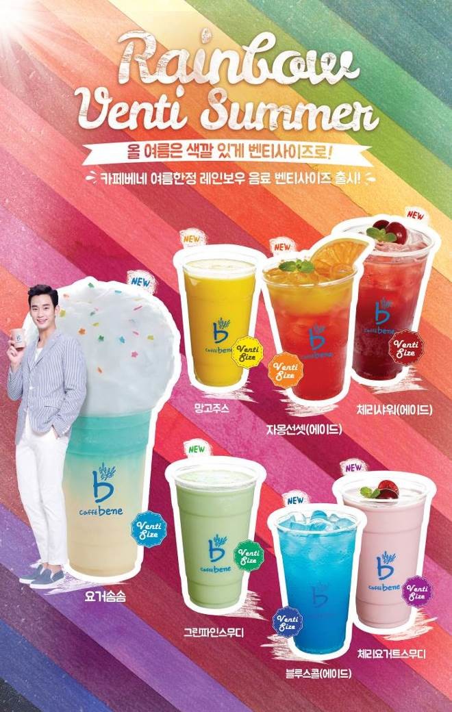 레인보우 음료 7종은 체리샤워(빨강), 자몽선셋(주황), 망고주스(노랑), 그린파인스무디(초록), 요거솜솜(하늘), 블루스콜(파랑), 체리요거트스무디(보라)로 각기 다른 일곱 개의 매력을 나타냈다.