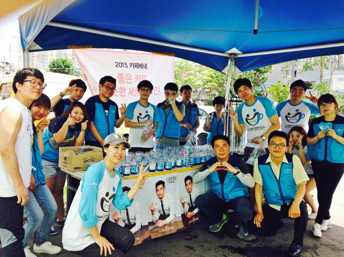 카페베네는 지난 6월부터 ‘2015 카페베네 좋은 커피, 따뜻한 세상’ 캠페인의 일환으로 밥퍼나눔운동본부와 함께 나눔 봉사활동을 실천하고 있다. 오는 18일(토)에는 특별히 충청지역 임직원들이 참여해 대전역에서 아이스커피를 나눌 예정이며, 8월에는 경상지역 임직원과 청년봉사단이 함께 부산지역에서 아이스커피 나눔 봉사활동을 진행할 예정이다.