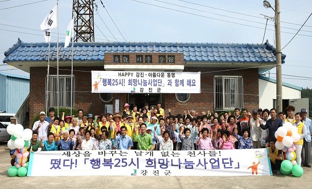 한편, 행복25시 희망 나눔 사업단은 Happy 강진‧아름다운 동행’이라는 슬로건 아래 80여명의 봉사단이 2013년 3월 활동을 시작했다. 복지서비스 접근성이 상대적으로 떨어지는 마을을 찾아가 이․ 미용, 목욕봉사, 밑반찬배달, 소규모 수리, 양․한방 진료, 이동세탁, 도배․장판 등 생활에 필요한 25여개 분야의 봉사를 수행하고 있다.