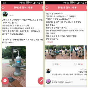 이뿐만이 아니라 주민들은 자신의 생활속 이야기와 좋은 글을 밴드에 올려 서로 공감하고 소통하는 활동을 통해 서로 얼굴은 모르지만 인사를 나누면서 주민들간에 더욱 가까워지고 이웃간의 정을 쌓고 있다.