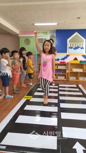 경기 부천시 오정초등학교 병설유치원은 지난 1일 오전 10시부터 본원 어린이들을 대상으로 도로교통안전관리공단에서 주관하는 '교통안전교육'을 실시했다. 사진은 이날 안전교육에 참여한 한 어린이가 횡단보도를 건너고 있는 모습.(사진제공=부천교육지원청)