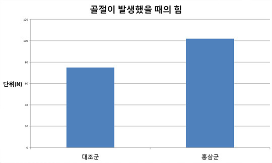 그 결과 대조군은 상대적으로 약간 75N의 힘을 가했을 때 뼈가 부러졌다. 하지만 홍삼 군은 무려 102N의 힘을 받아야지 부러졌는데, 이는 대조군과 비교해 36%의 힘을 더 견딘 것이다. 뼈의 강도는 골밀도와 정비례하는 경향이 있어 강도가 강해졌다는 것은 골밀도가 그만큼 상승해 골다공증이 개선됐음을 의미한다.
