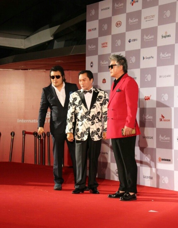 1일 오후 제20회 부산국제영화제 개막식 레드카펫 행사에는 한국영화배우협회 거룡 이사장과 이동준 수석 부이사장, 김보성 이사가 참석해 포토월에서 포즈를 취하고 있다.