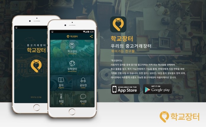 이와 관련하여 두 청년이 전 세계 대학생을 대상으로 물품거래 및 경험공유 플랫폼을 제작하여 화제이다. 최근 창업 키워드가 ‘공유경제’라는 것을 생각했을 때, 대학생 정보 및 물품 교류 어플리케이션 중고 장터 앱 ‘학교장터’가 시기를 아주 잘 타고났다는 전문가 평가가 줄을 이으면서, 오픈 직후부터 많은 학생들의 관심을 받고 있다.