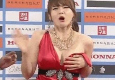 당시 방송에서 서유리는 붉은 드레스를 입고 등장,갑자기 얇은 드레스 어깨 끈이 풀리며 아찔한 상황을 연출했다.