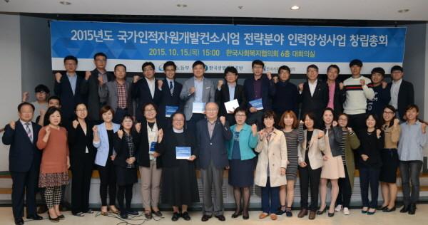한국사회복지협의회는 15일 한국사회복지회관 회의실에서 ‘국가인적자원개발컨소시엄 전략분야 인력양성사업(이하 컨소시엄 인력양성사업)’의 본격적인 개시를 알리는 창립총회를 개최했다고 밝혔다.