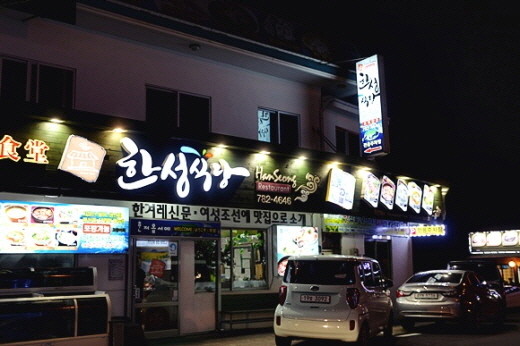 성산일출봉 입구에 위치한 한성식당은 백년초 칼국수가 들어간 해물탕이 특히 인기이며 해물탕에 푸짐한 해산물이 들어가 많은 여행자들이 찾는 있다고 한다. 특히 중국 개별 여행자들이 웨이보를 통해 정보를 보고 많이 방문 한다고 한다.