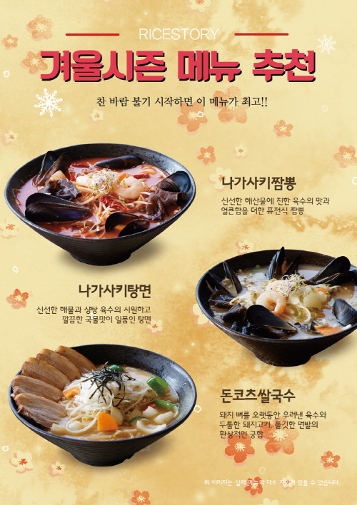 이번 겨울 신메뉴는 '나가사키짬뽕' '나가사키탕면' '돈코츠쌀국수' 등 겨울분위기와 어울려 더욱 음식에 풍미를 더할 것으로 보인다.