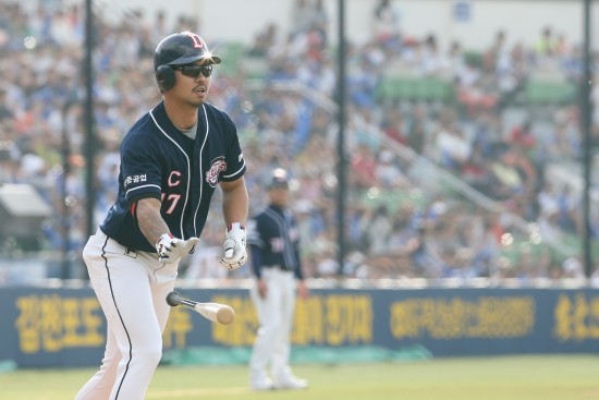 무사에 주자가 출루한 기회에서 손아섭은 중전안타로 기회를 이어갔다. 무사 1,2루의 기회에서 정근우가 좌측 2루타로 오재원을 불러들였다. 대역전극의 시작을 알리는 득점이었다.