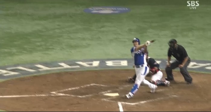 타석에 들어선 김현수는 미국의 투수 브룩스 파운더스에게 우측 라인을 타고가는 빠른 타구로 2루타를 만들어냈고, 주자 2명을 홈으로 불러들였다. 이어 이대호가 삼진으로 물러났지만 박병호가 좌측담장을 크게 넘어가는 홈런을 때려내며 3점을 더 추가했다.