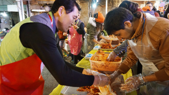 | ▲ 주한유학생 대상의 김장 담그기 체험 모습 | ||