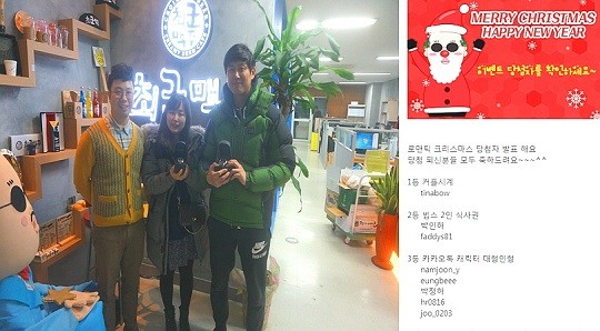 이번 이벤트 1등 상품으로는 해외에서 직수입한 명품브랜드 ‘Armani’에서 인기모델인 커플시계 AR5905, AR5906을 증정했다. 또한 2등 상품은 VIPS 외식 상품권. 3등 상품은 요즘 남녀노소 인기 많은 카카오 대형인형(1M)을 선물로 제공했다.