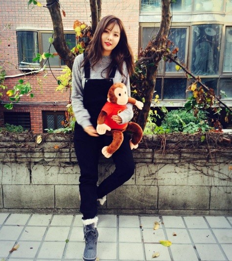 현아는 공개된 사진 속에서 은은한 회색 니트와 진한 데님 스타일의 멜빵 바지를 입은채 미소를 짓고있다. 한손에는 원숭이 인형을 안고 깜찍한 느낌을 주고있다.