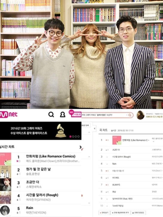 매드클라운과 브라더수의 소속사 스타쉽엔터테인먼트는 "지난 18일 자정 공개된 '만화처럼'이 엠넷닷컴, 벅스뮤직 등 주요 음원 사이트 실시간 차트에서 1위를 기록하고 있는 중이다. 만화와 같은 재미있는 설정을 빌려 척박한 현실을 살아가는 N포세대들에게 공감과 위로를 유쾌하게 풀어낸 점이 좋은 반응을 얻은 것 같다"고 전했다.