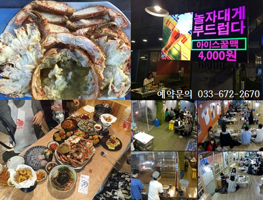 리조트로 유명한 양양 쏠비치 근처맛집 낙산놀자대게는 강원도 양양군 강현면 해맞이길 32-1 에 위치하며 예약은 (033-672-2670)로도 할수 있다.
