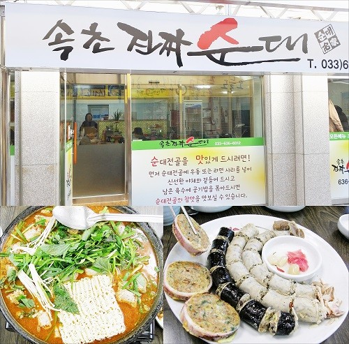 이 곳에는 다양한 아바이순대 요리가 준비 되어 있는데, 그 중에서 얼큰하고 매콤한 국물 맛으로 이 곳을 방문하는 여행객들의 지친 미각을 사로 잡는 순대전골은 인기 메뉴 중 하나다.