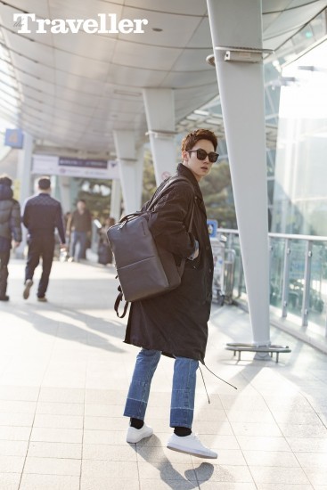 유연석은 오랜 비행시간에 대비한 듯 무릎까지 내려오는 어두운 톤의 편안한 재킷과 스트라이프 티셔츠 및 데님 셔츠와 아랫단이 투톤인 데님 팬츠, 그리고 선글라스를 매치해 캐주얼하면서도 스타일리시한 룩을 연출했다.