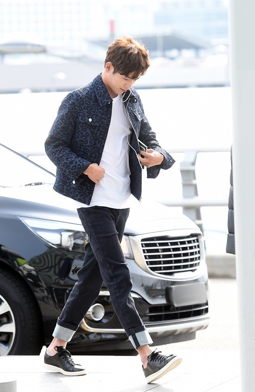 이날 서강준은 귀엽게 롤업한 생지 데님에 화이트 티셔츠를 입고 레오파드 패턴의 데님 자켓을 착용해 봄을 맞아 한층 가벼우면서도 스타일리쉬한 모습으로 '워너비 남친룩'을 완성했다.