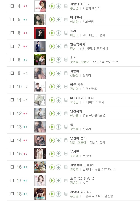| ▲ 한가을의 '당신에게' 멜론 음원차트/멜론사이트 캡쳐 | ||