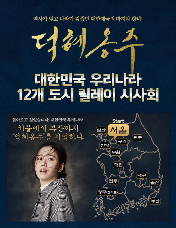 '대한민국 우리나라 12개 도시 릴레이 시사회'를 개최하며 관객들의 시선을 집중시키고 있는 영화 '덕혜옹주'는 올 여름 극장가를 묵직한 울림으로 물들일 예정이다.