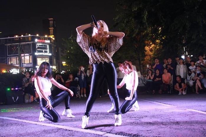랩퀸 ‘타이미’가 19일 오후 8시 홍대 걷고 싶은 거리에서 게릴라 공연을 펼쳤다.