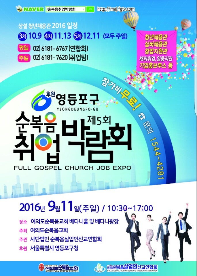 이번 순복음취업박람회는 서울 영등포구청의 후원으로 실시되며, 구인구직 대상자는 청ㆍ장년층부터 노년층까지이다.