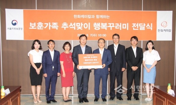 이날 한화케미칼은 보훈가족을 위한 행복꾸러미 240세트를 준비, 용산구 거주 국가유공자 가구를 방문해 선물을 전달했다.