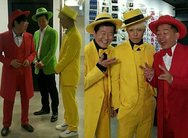 최근 공개된 태진아와 강남의 콜라보레이션 '사람 팔자' 뮤직비디오 스틸컷은 이경규와 김준호가 각각 노란색과 초록색 옷을 입고 있는 모습이 담겨있다.