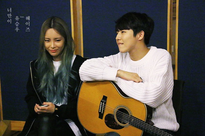 유승우의 소속사 스타쉽엔터테인먼트는 4일 공식 SNS를 통해 '너만이(Only U) 비하인드 현장'이라는 제목으로 녹음실을 배경으로 한 사진을 공개했다. 공개된 사진 속 유승우와 헤이즈는 녹음실에서 서로 마주보며 특급케미를 발산, 아날로그 감성이 물씬 풍기며 시선을 사로잡는다.