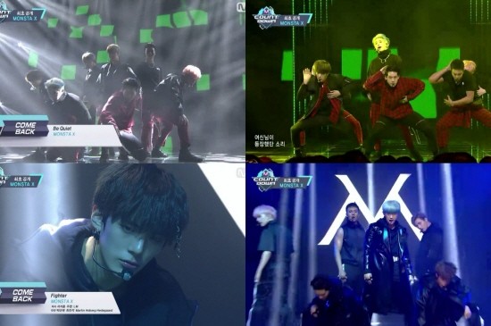 지난 6일 방송된 엠카운트다운에서 몬스타엑스는 'Fighter(파이터)'와 'BE QUITE(비 콰이엇)' 무대를 동시에 선보였다.
