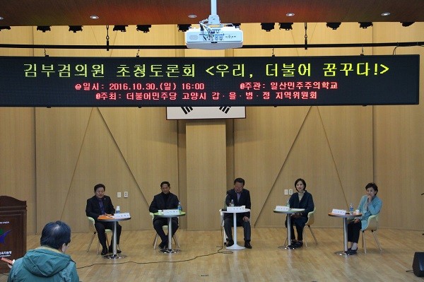 . 한편, 이번 행사를 주관한 일산민주주의학교는 더불어민주당 고양시 전체 지역위원회와 함께 「우리, 더불어 꿈꾸다!」시리즈를 진행할 것이며, 추후 ▲ 안희정 충남도지사 (11월), ▲ 박원순 서울시장 (12월), ▲ 문재인 더불어민주당 前 대표 (2017.1월) 초청토론회를 계획 중에 있다고 밝혔다.