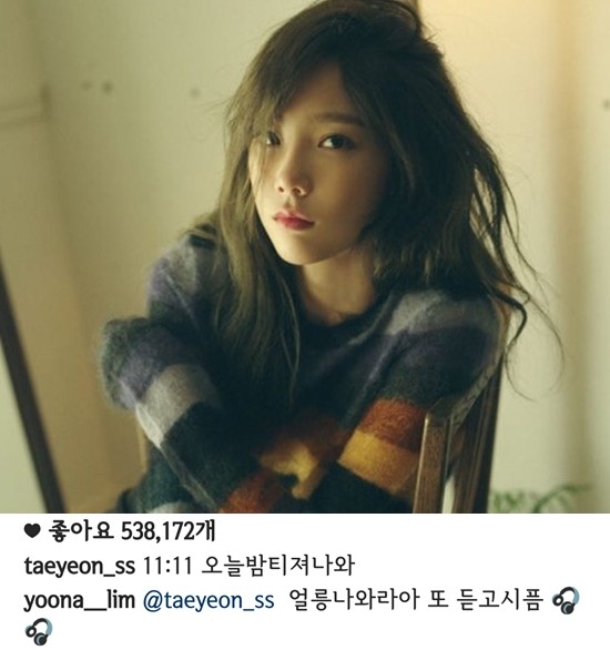 한편 태연은 1일 오후 11시 11분 각종 음원차트를 통해 신곡 '11:11' 을 공개해 뜨거운 반응을 얻고 있다.