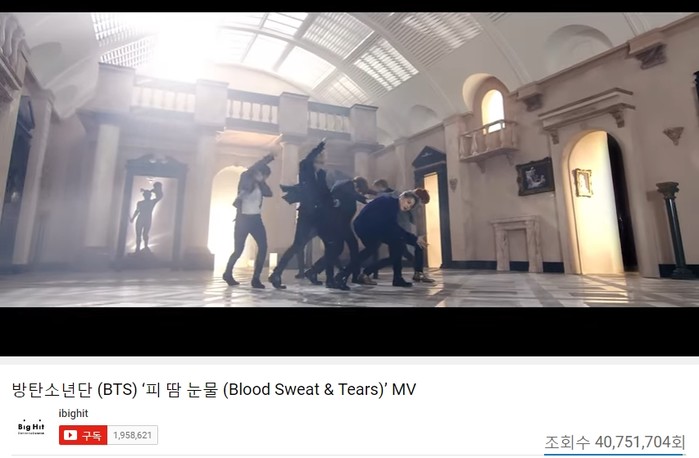 3일 오전 8시 기준 '피 땀 눈물' 뮤직비디오는 동영상 공유사이트 유튜브에서 조회수 약 4070만을 기록했다.