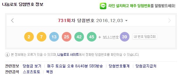 한편 731회 로또 당첨번호는 '2, 7, 13, 25, 42, 45'로 발표됐다.