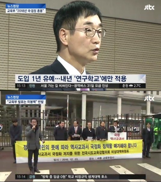 이준식 부총리 겸 교육부장관은 대국민담화를 통해 2018년부터 국 검정 역사교과서 혼용체제를 도입한다고 밝혔다.