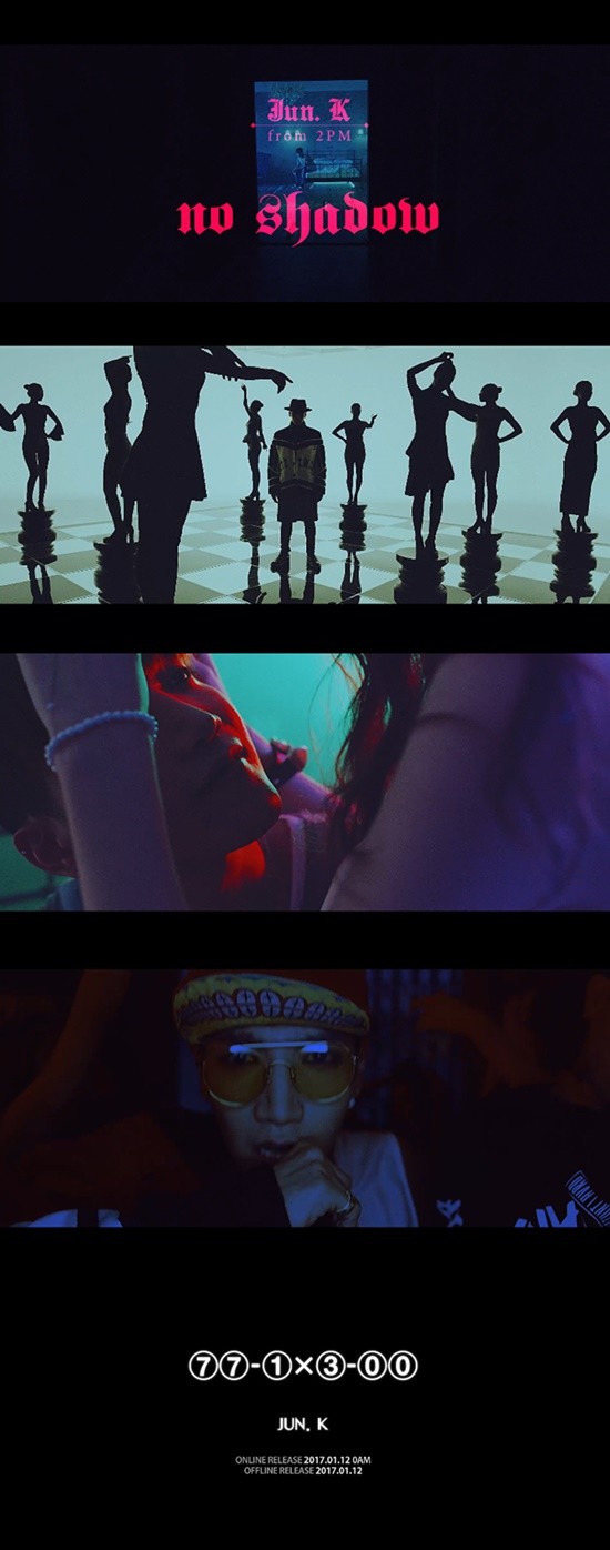 그룹 2PM의 멤버 Jun. K는 10일 새 앨범 '77-1X3-00' 타이틀 곡 ‘NO SHADOW’ 뮤직비디오 티저를 선보였다.