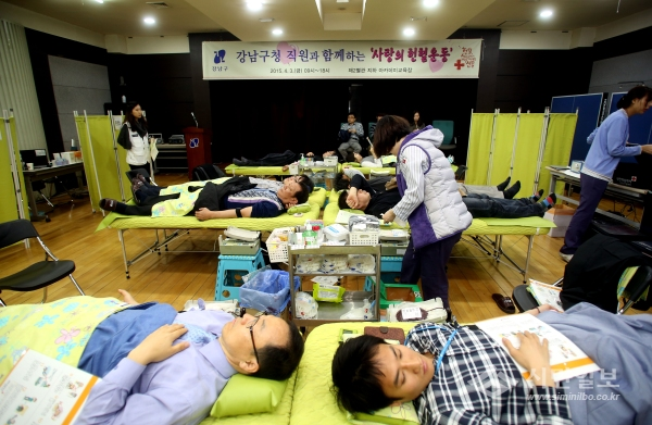 [시민일보=이대우 기자] 서울 강남구(구청장 신연희)가 23일 구청 제2별관 지하아카데미 교육장에서 200여명의 구청 직원들과 함께 ‘사랑의 헌혈 행사’를 실시한다.