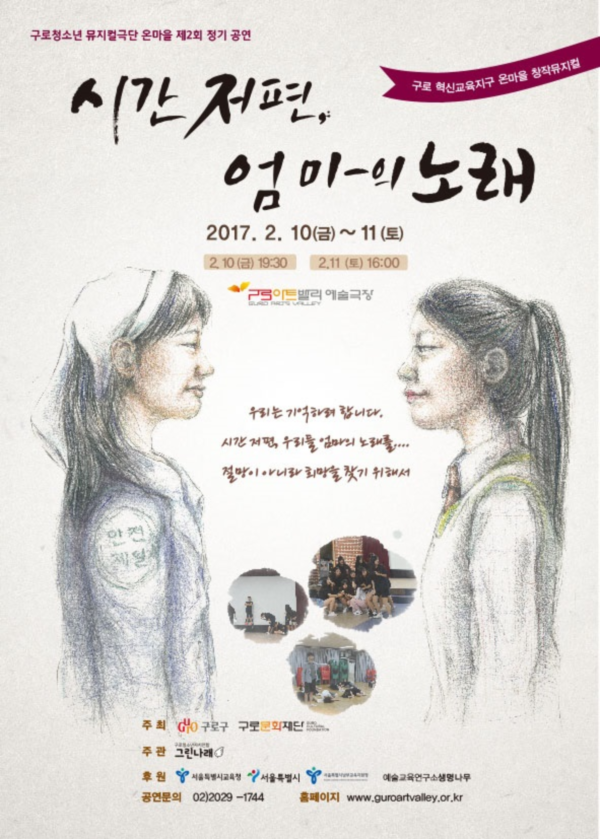 구로구청, 구로문화재단 주최로 열린 이번 공연은 ‘구로청소년 뮤지컬 극단 온마을’의 두 번째 무료 정기공연으로, 1980년대 중반 노동운동이 치열했던 구로공단을 배경으로 노동자들의 애달픈 삶을 담았다.