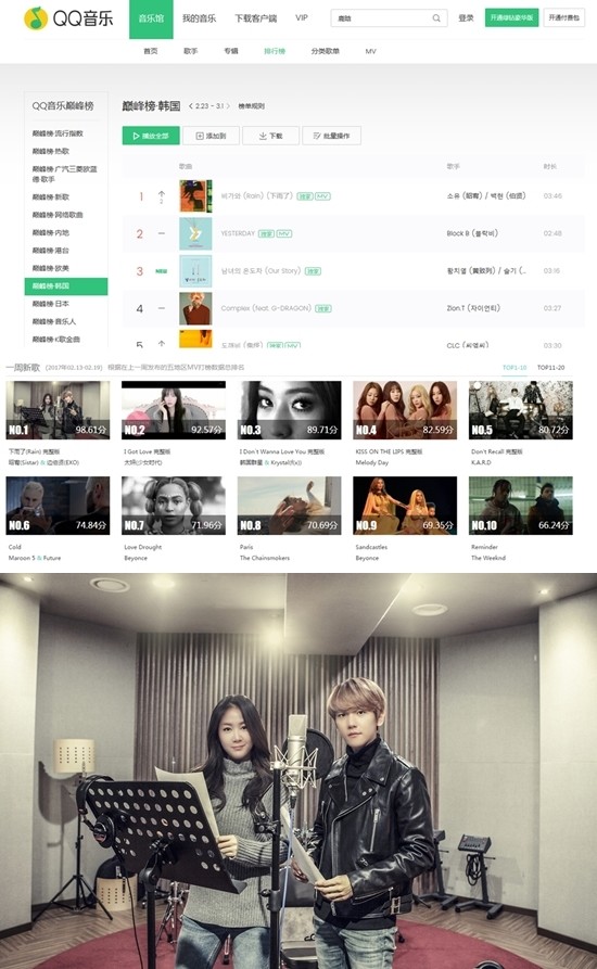 지난 14일 발매된 소유와 백현의 콜라보곡 '비가와'는 중국 최대 음악사이트인 QQ뮤직 KPOP차트와 인웨타이의 위클리 뮤직비디오 차트에서 각각 1위를 차지하며 인기를 이어갔다.