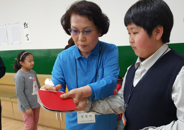 | ▲ 사진은 ‘어르신 경륜전수활동 지원 사업‘에 참여한 시니어 강사가 탁구를 지도하고 있는 모습.(사진제공=강서구청) | ||