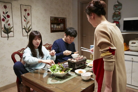 이어 먹방계의 원조 스타 하정우를 넘보는 윤제문&정소민 부녀가 잘 차려진 식탁에 나란히 앉아 고기를 먹는 스틸에서는 아빠와 딸의 서로 다른 먹방 스타일이 대비를 이뤄 바디 체인지 연기에 대한 궁금증을 자아낸다. 정소민은 고기와 쌈을 한가득 집어 먹는 대식가 아빠로 디테일이 살아 있는 열연을 펼친다.