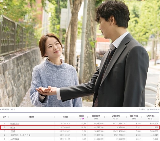 ‘어느날’은 2일 (저녁 8시 33분) 한국 영화 전체 예매율 1위에 올랐다. 특히 ‘어느날’은 언론과 관객의 뜨거운 극찬 세례 속 올봄 최고의 웰메이드 감성 드라마로 손꼽히고 있어 벌써부터 4월 극장가 흥행 다크호스로 주목 받고 있다.