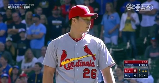 오승환은 세인트루이스가 6-3으로 쫓긴 9회말 무사 1루서 팀 내 5번째 투수로 등판해 위기상황서 또 팀을 구해내며 3일 연속 세이브를 챙기며 올 시즌 5번째 세이브를 기록, 평균 자책점 5.59를 기록했다.