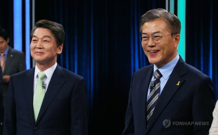 다른 후보들을 모두 제외한 양자 대결로 압축할 경우, 문 후보 41.4%, 안 후보 41.0%였다.